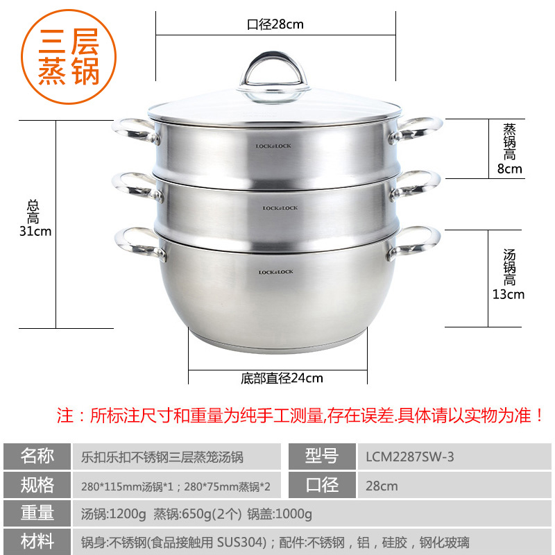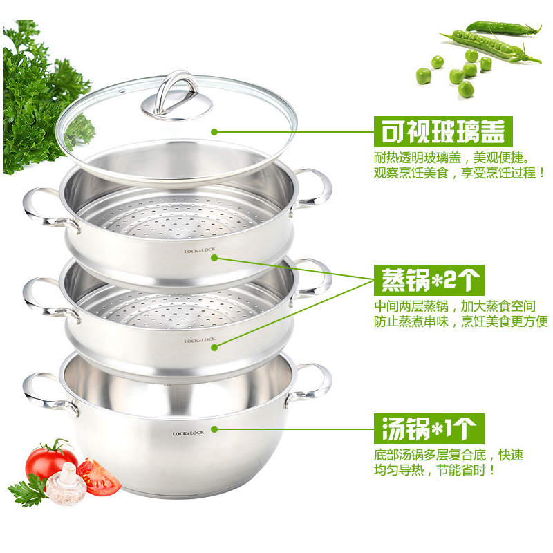 3层加厚304不锈钢复合底蒸锅【不锈钢/不锈钢色】 |