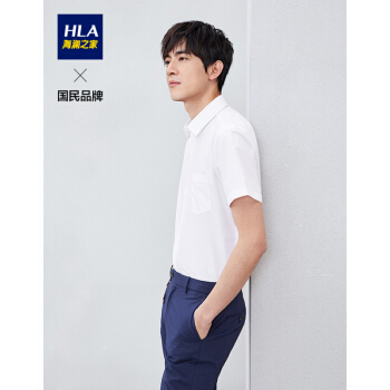 HLA海澜之家舒适正装衬衫服帖有型短袖衬衫男HNCBD2R011A 漂白11 175/92A |
