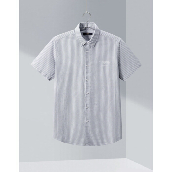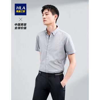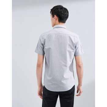 HLA海澜之家水洗棉质短袖衬衫2020夏季新品休闲条纹短衬男HNECD2Q012A 浅灰条纹12 170/88A |