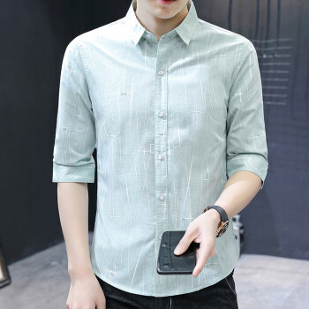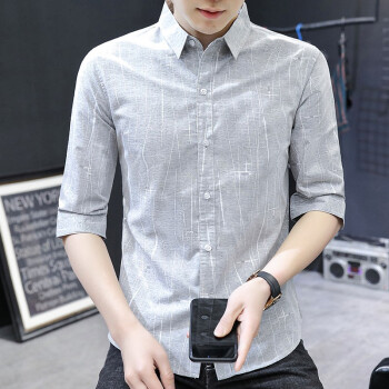 ED.HD衬衫男2020夏季新款短袖衬衫男士五分袖衬衣时尚休闲韩版男装潮流衣服 6028浅灰色 XL |
