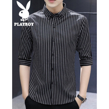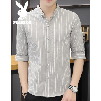 短袖衬衫男2020夏季新品透气韩版条纹衬衣男装青年薄款宽松休闲外套五分袖上衣服 6023灰色 M |