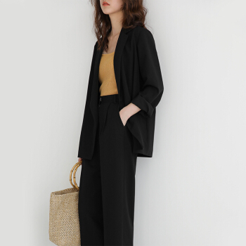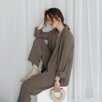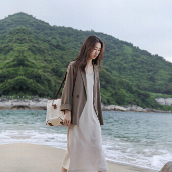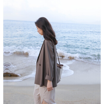 BINXUN 小西装外套女春装2020韩版英伦风上衣复古气质休闲宽松chic小西服女夏 卡其色 S 西装外套 |
