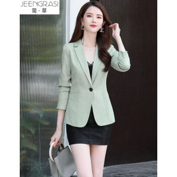 简草 小西装女2020秋季新款韩版时尚潮流舒适气质修身纯色一粒扣小西服外套女X6005 绿色 M |