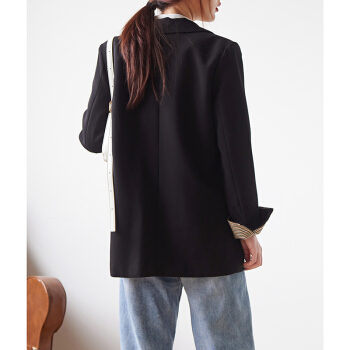 【新品5折 149.5元】黑色小西装女 2020秋韩版小外套小个子网红短款上衣休闲西服外套X445 黑色 M |