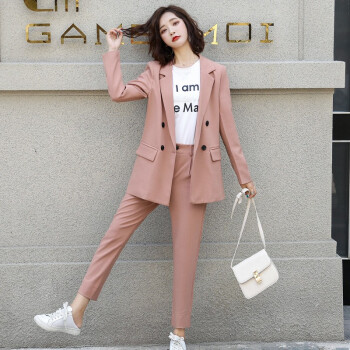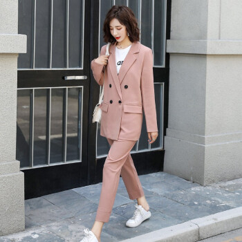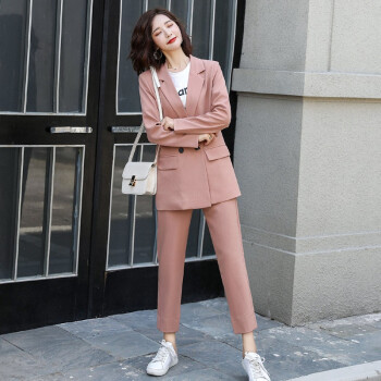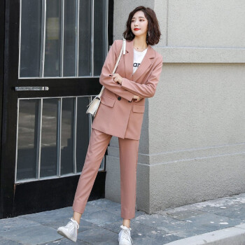 留和 小西装外套女2020秋季新品休闲职业装女装套装时尚款修身小个子工装外套X9911 粉色 L |