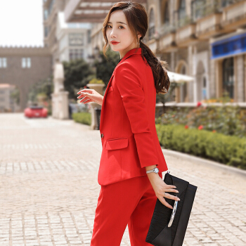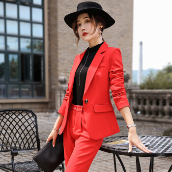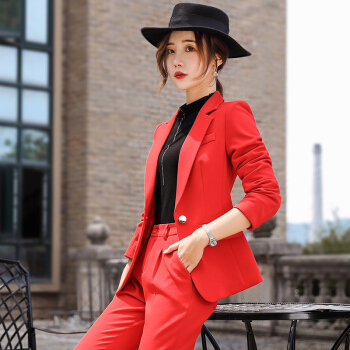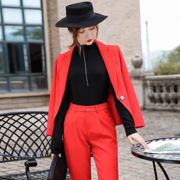 【多色可选】昂柏红色西装女套装大码显瘦休闲2020秋冬新品OL职业女装气质时尚通勤酒店支持人工作服 红色单件小西装 M |