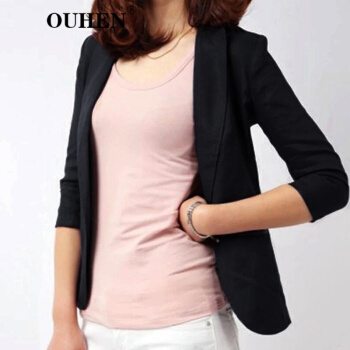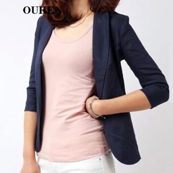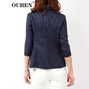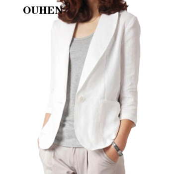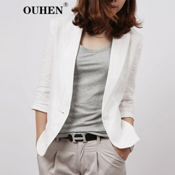 OUHEN高端品牌女装 亚麻小西装外套女2020夏季新款经典韩版休闲棉麻白色西服薄款上衣外套 白色 M |