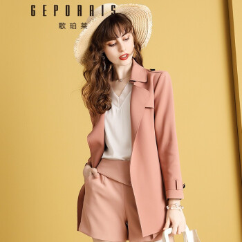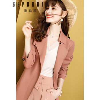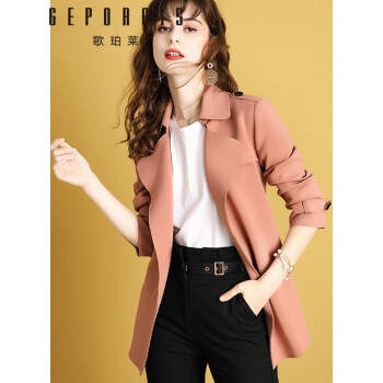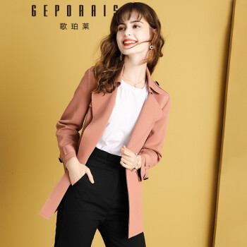 歌珀莱品牌女装中长款风衣外套女2020年新款秋装气质英伦风小个子大衣外套 烟粉色 S |