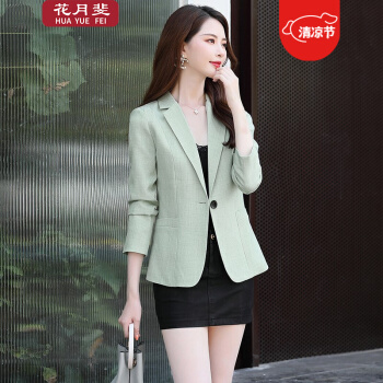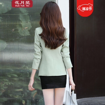 花月斐小西装女2020秋季新款西服时尚一粒扣个性长袖OL通勤西服小外套女005 绿色 L |