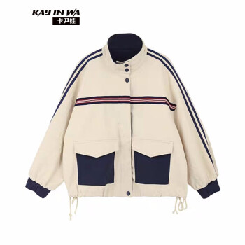 卡尹娃 短外套女2020春秋新款韩版学生女装复古港味工装休闲百搭宽松bf情侣棒球服 图片色 S |