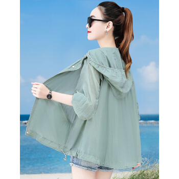 婪澈防晒衣衫女2020女装夏季新款短外套女韩版显瘦小众百搭薄款开衫外套女 豆绿色 请拍正确尺码 |
