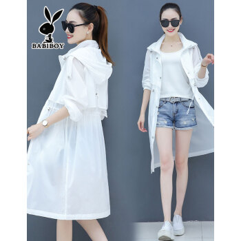 BABIBOY 防晒衣女中长款2020夏季新款女士防晒衫百搭宽松防紫外线透气薄款长款外套女 白色 M |