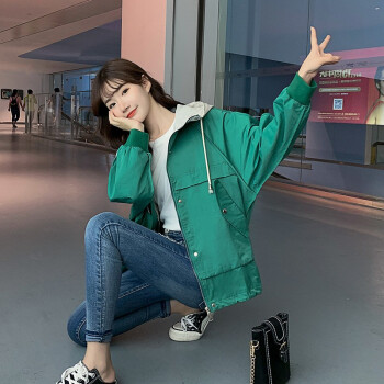 萱蓝外套女春秋装2020韩版新品宽松百搭森系短款棒球服休闲连帽工装上衣风衣潮2307 米色 L |