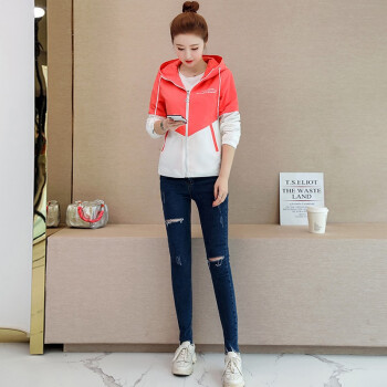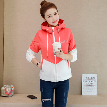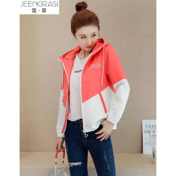 简草 短外套女2020秋季新款时尚潮流休闲百搭韩版气质拼色长袖连帽外套女D5812 桔色 L |