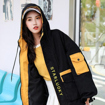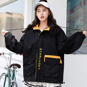 茵美伊 短外套女2020春秋女装大码韩版百搭BF棒球服工装学生外套女 黑色 M |