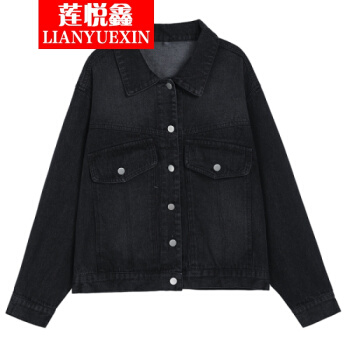 莲悦鑫短外套女大码外套女2020春秋新款韩版宽松印花牛仔外套女百搭网红夹克上衣18631 A蓝色背后涂鸦 S |