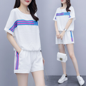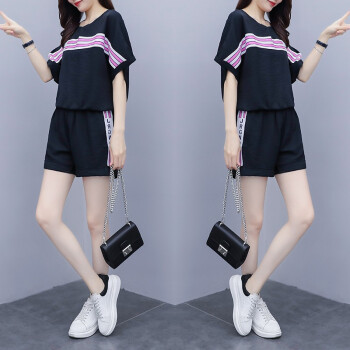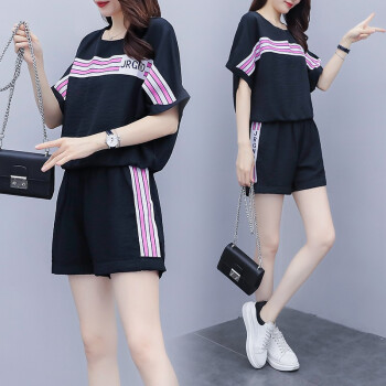 睡妍 大码女装套装女夏2020夏季新品韩版胖mm宽松显瘦短袖T恤短裤两件套休闲套装女 7319 黑色 XXL(135-155斤) |