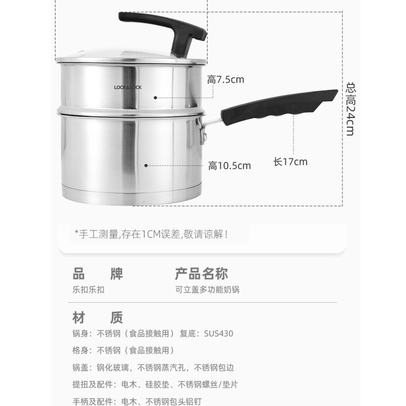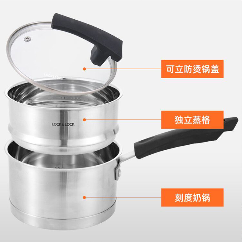 18cm可立盖多功能奶锅304不锈钢辅食锅加厚二层蒸锅【304不锈钢/不锈钢】 |