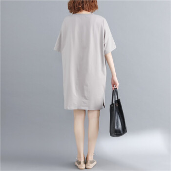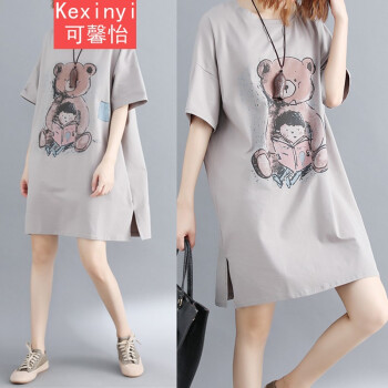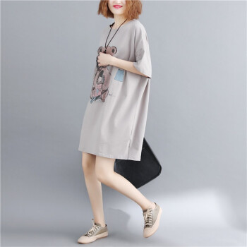可馨怡 胖妹妹夏装纯色遮肚子显瘦文艺大码女装胖mm宽松卡通印花短袖T恤连衣裙 图片色 大码均码【110-220斤】 |