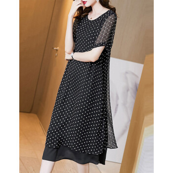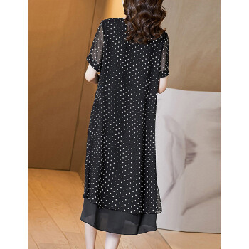 莎妮朵罗大码女装雪纺连衣裙2020夏装新品气质优雅圆点宽松短袖长裙16174 黑色 4XL建议160-180斤穿着 |