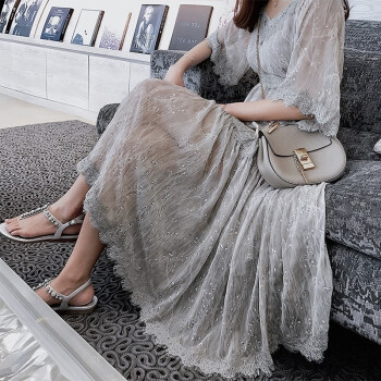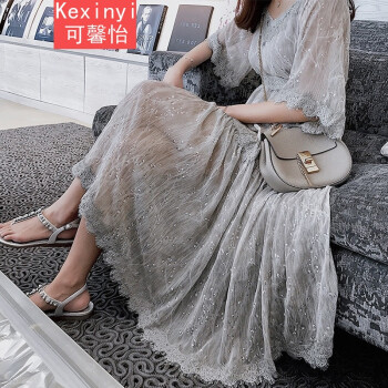 可馨怡 胖妹妹夏装2020胖人女装新款显瘦遮肚子连衣裙大码女装胖mm雪纺仙女裙200斤 灰色 XXXXL(建议150-175斤左右) |