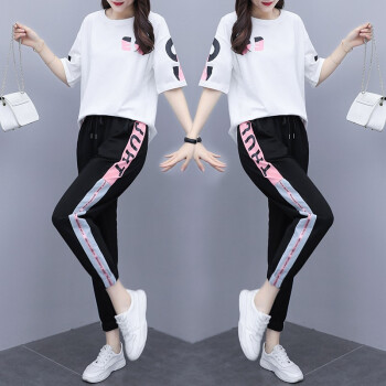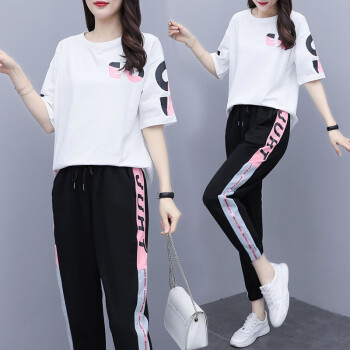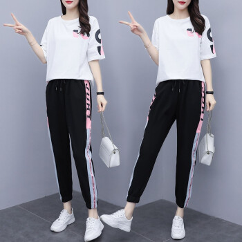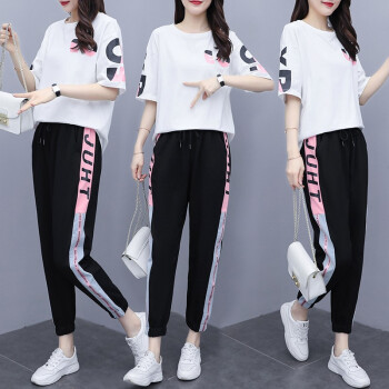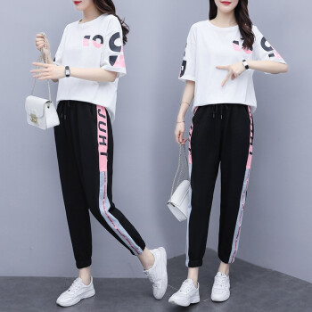 睡妍 大码女装套装女夏2020夏季新品加肥加大码胖mm宽松显瘦遮肉印花短袖T恤九分裤休闲运动套装女夏 图片色 XXL(120-140左右) |