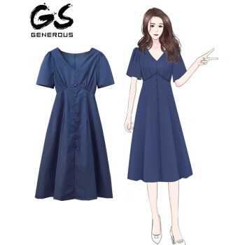 歌诺瑞丝大码女装胖mm连衣裙2020夏装新款文艺宽松显瘦复古休闲气质减龄韩版遮肚子洋气中长裙 蓝色 XL 推荐115-130斤 |