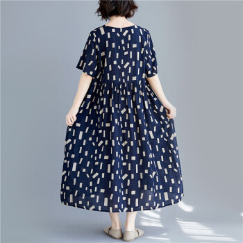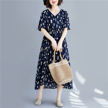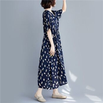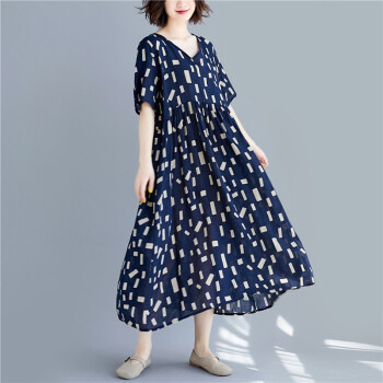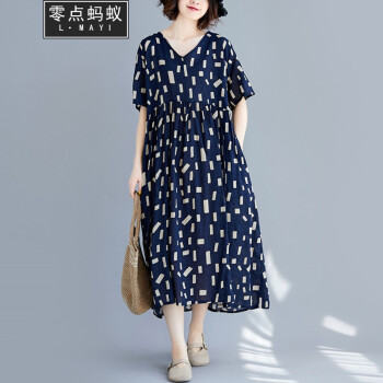 零点蚂蚁2020新款加肥加大码女装胖mm夏装洋气休闲时尚韩版v领收腰遮肉宽松连衣裙胖人女装胖妹妹裙子 图片色 均码【110-200斤】 |