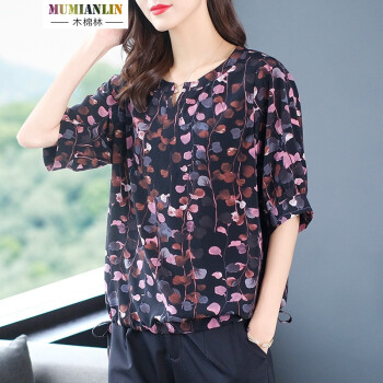 木棉林胖妹妹mm短袖上衣加大码女装2020新款夏装洋气印花宽松遮肚子显瘦T恤Z202729 黑色 3XL建议160-180斤 |
