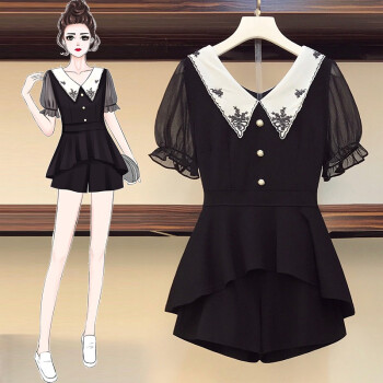 芷依丽 大码时尚套装女2020夏季新款韩版宽松显瘦胖MM短袖T恤女休闲阔腿短裤洋气减龄遮肚子两件套 黑色 L(建议96-115斤) |