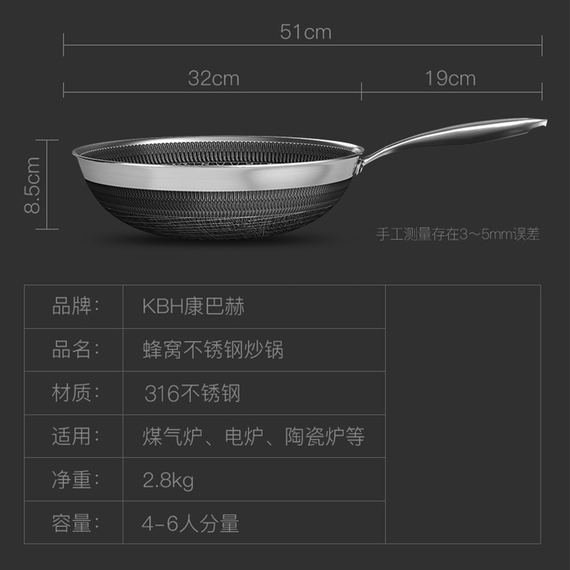 【超值单品】【送康巴赫厨房四件套】康巴赫316不锈钢双面屏旗舰款炒锅32cm【316不锈钢/图片色】 |