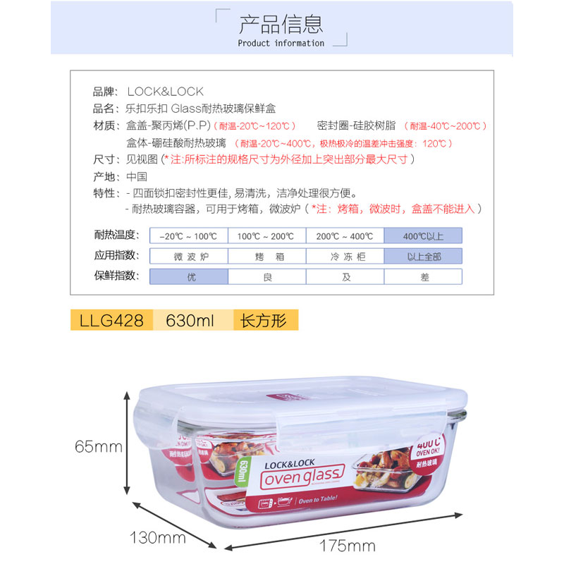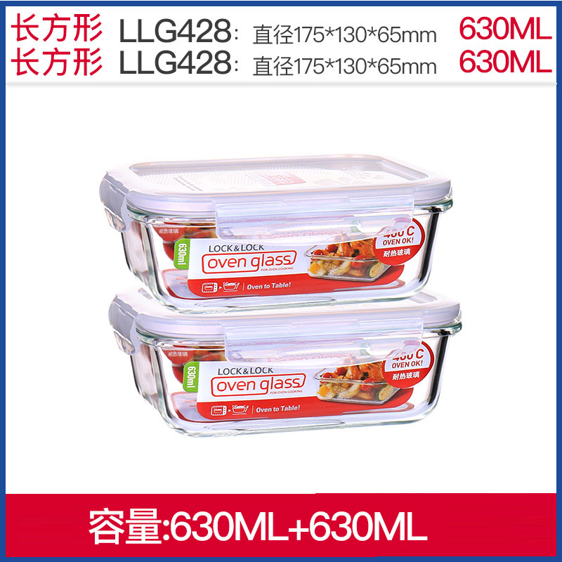 耐热玻璃保鲜盒微波炉适用饭盒630ML*2【玻璃/透明】 |