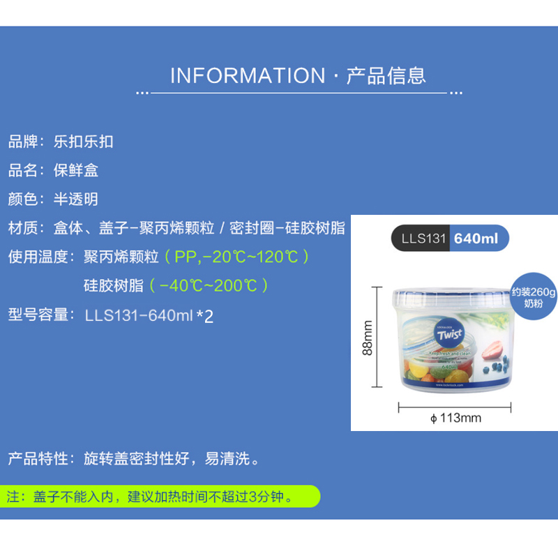 圆形塑料保鲜盒两只装 640ML*2【塑料/透明】 |