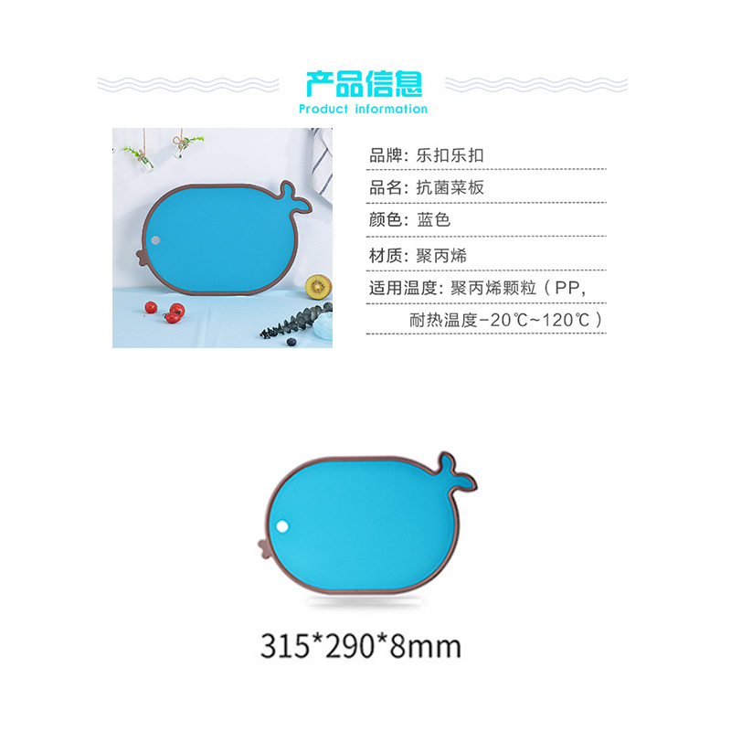 创意卡通家用塑料抗菌砧板水果辅食砧板切菜板315*290*8mm【塑料/蓝色鲸鱼】 |