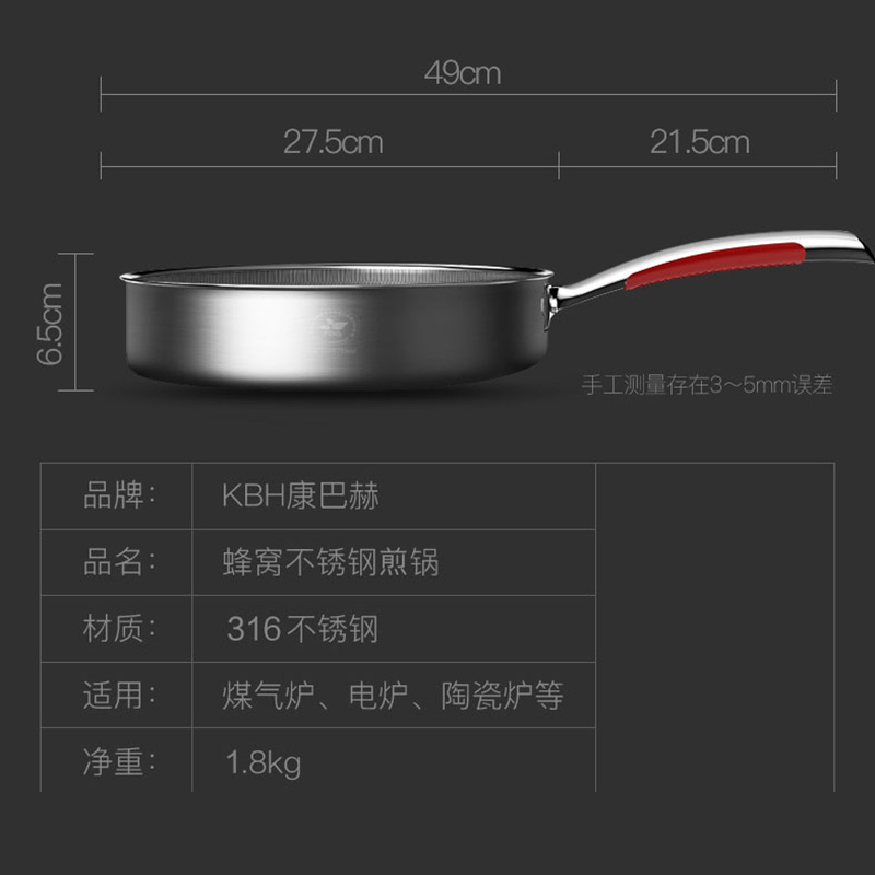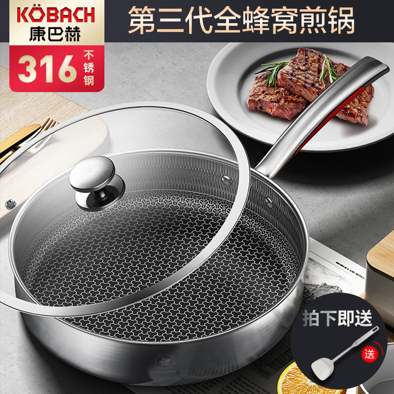 康巴赫三代蜂巢316不锈钢煎锅【赠钢铲】【316不锈钢/银色】 |