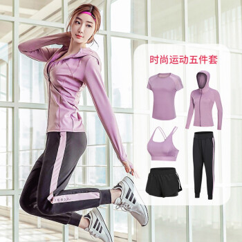 VACK 瑜伽服女运动套装夏季新款专业运动跑步健身房初学者速干衣网红夏健身服运动服五件套 豆沙紫(五件套) XL |