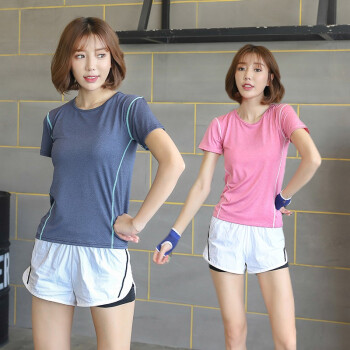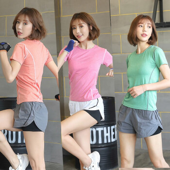 越伦 运动套装女夏季新款跑步服瑜伽服套装吸汗透气女速干健身服户外健身显瘦修身两件套 玫红短袖+白色短裤 M(80-90斤) |