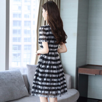 凝拉雪纺连衣裙女2020夏季流行新款时尚大码条纹衬衫裙短袖夏天气质裙子 格子 2XL(建议135-150斤) |