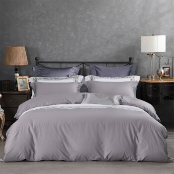 水星家纺 百丽丝 全棉四件套 80支长绒棉 纯棉床单被套 高支高密 汉格斯 烟灰色 200*230cm |