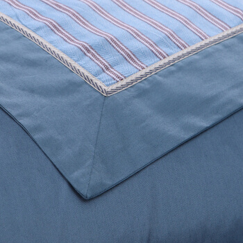 富安娜家纺 床上用品四件套纯棉全棉床品套件床单被套 中性条纹简约单双人射手座1米8/2米床(230*229cm)蓝色 |