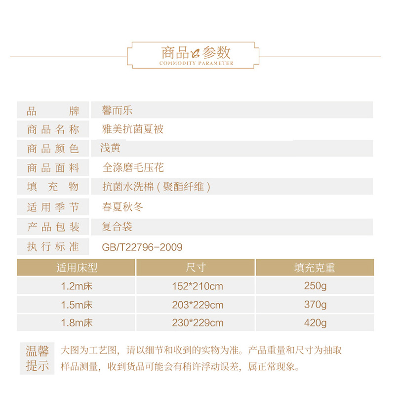 雅美抗菌夏被(被芯1件)(适合1.8米床)【面料:聚酯纤维;填充:聚酯纤维/浅黄】 |