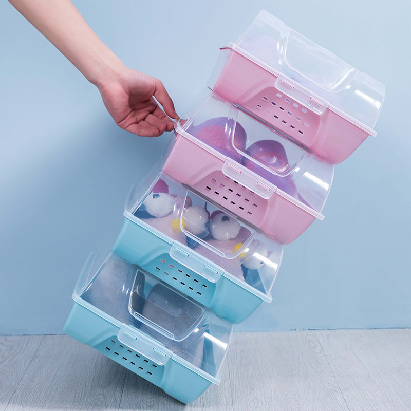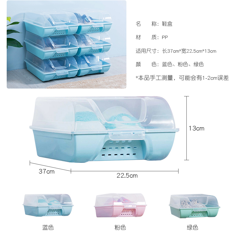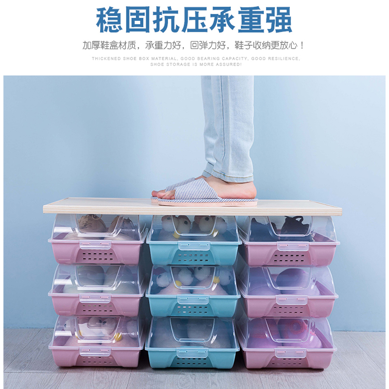 6个透明可视鞋盒收纳盒【PP/粉晶蓝】 |