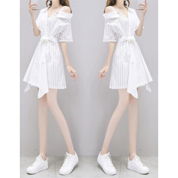 予蒙 一字肩修身吊带连衣裙女夏季2020新款韩版流行小个子显瘦女装气质超仙名媛夏装衬衫裙子 白色 M(建议100-110斤) |