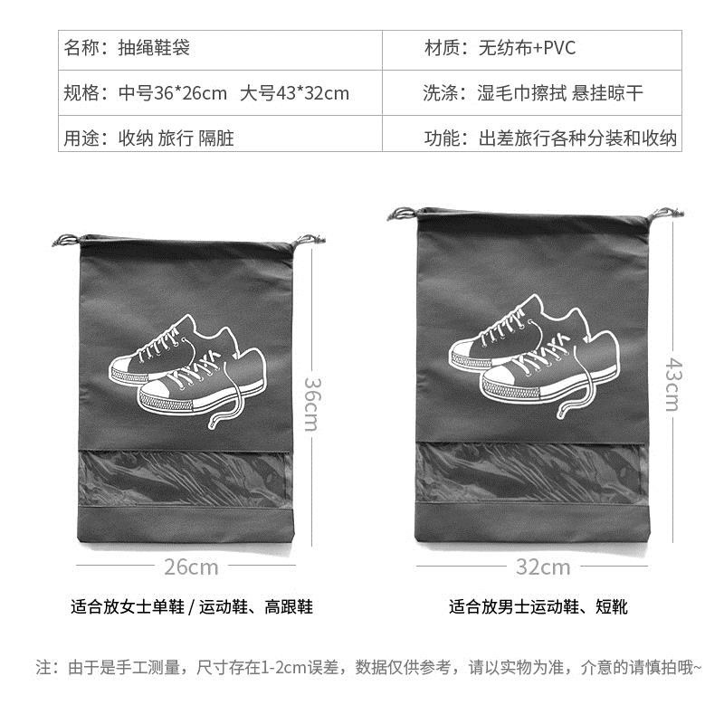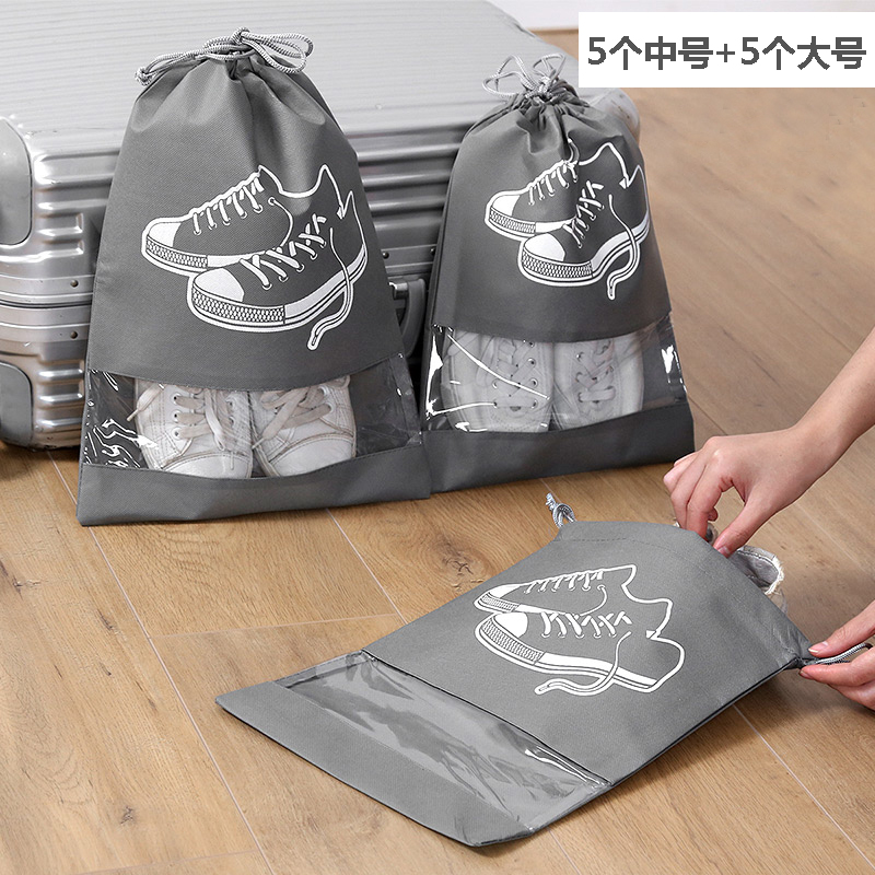 束口鞋袋收纳袋10个【无纺布/灰色】 |