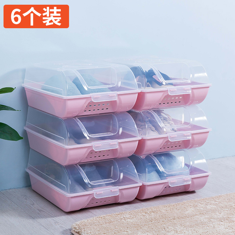 6个透明可视鞋盒收纳盒【PP/藕荷粉】 |