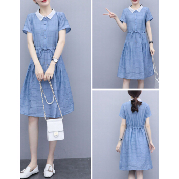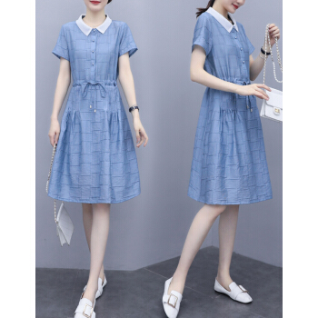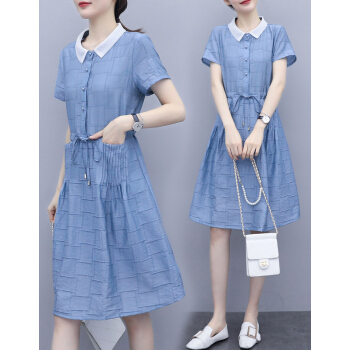 婪澈连衣裙女2020女装夏季新款韩版时尚休闲洋气修身裙子时尚显瘦裙子女 蓝色 请下正确尺码 |