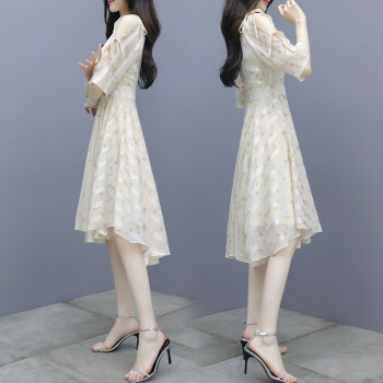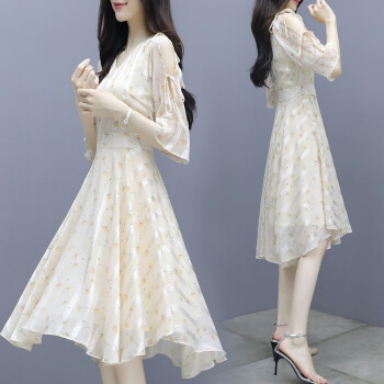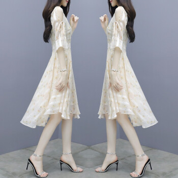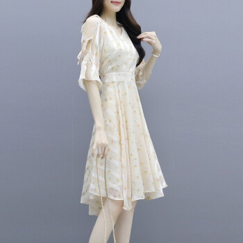 莱倪晟纳短袖连衣裙女装2020夏季新款韩版收腰显瘦印花性感沙滩裙子女潮 图片色 请拍正确尺码 |