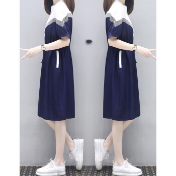 婪澈连衣裙女2020女装夏季新款轻熟风韩版收腰显瘦气质洋气流行夏天长裙子 藏青色 请下正确尺码 |