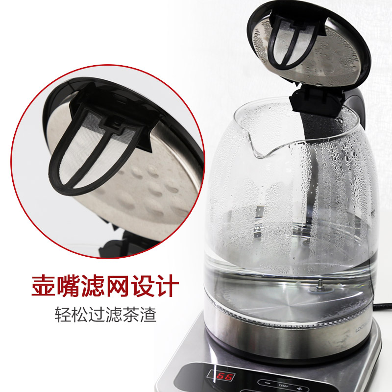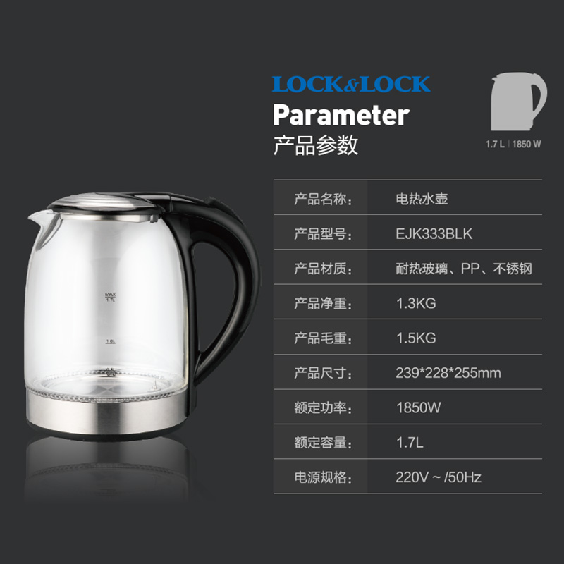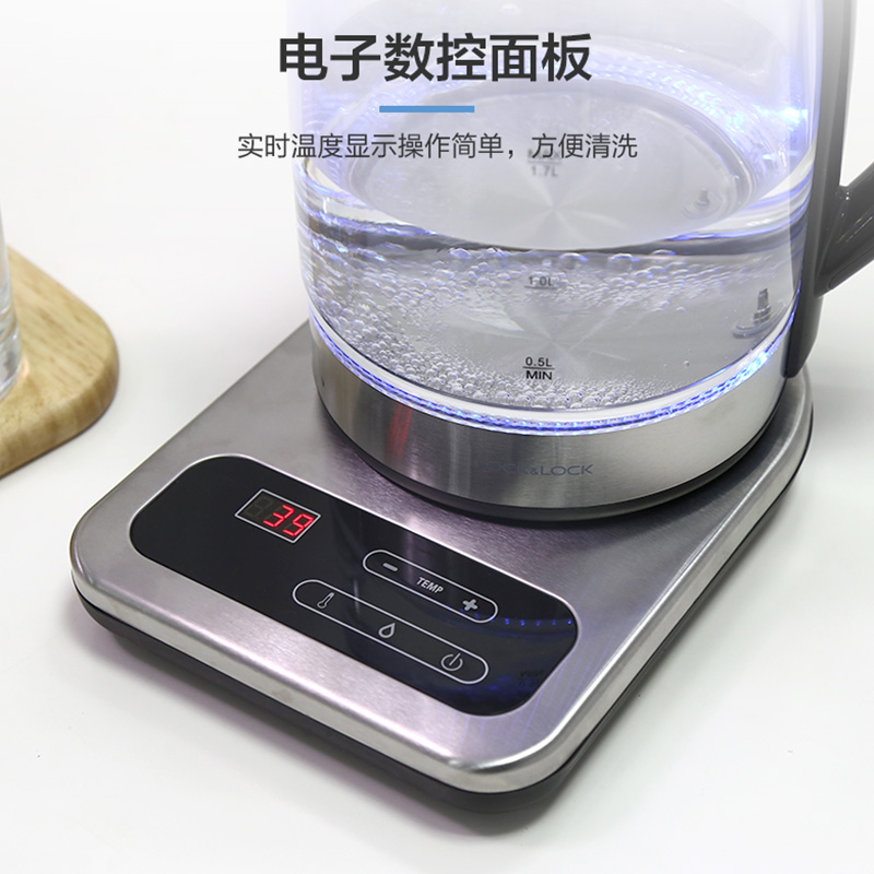 乐扣乐扣电热水壶1.7L大容量304不锈钢玻璃泡煮茶器烧水壶【玻璃/黑色】 |