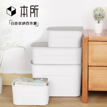 本所 大号日式收纳盒 多功能储物箱家用收纳箱内衣收纳盒药箱 4件套 白色2小号1中号1大号 |